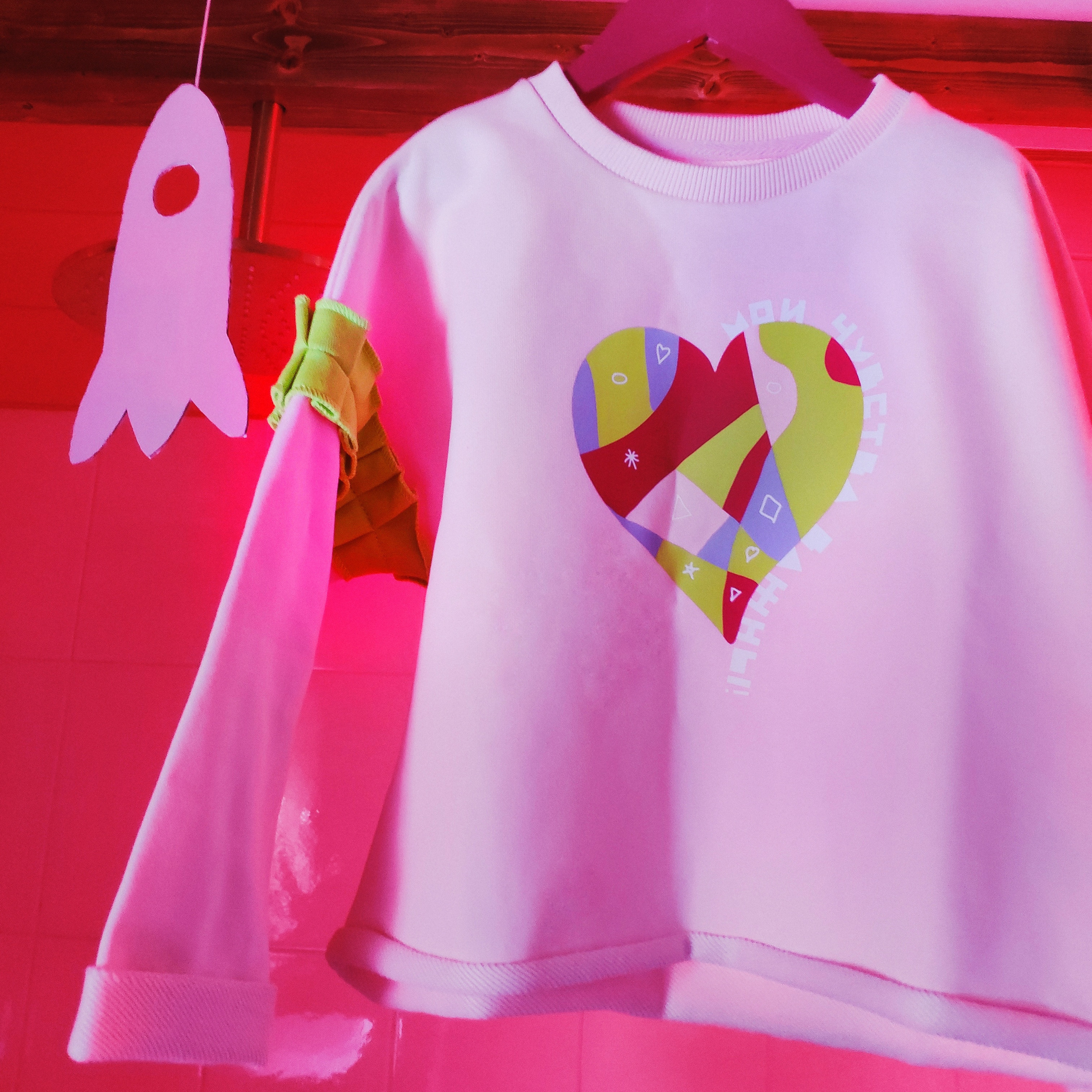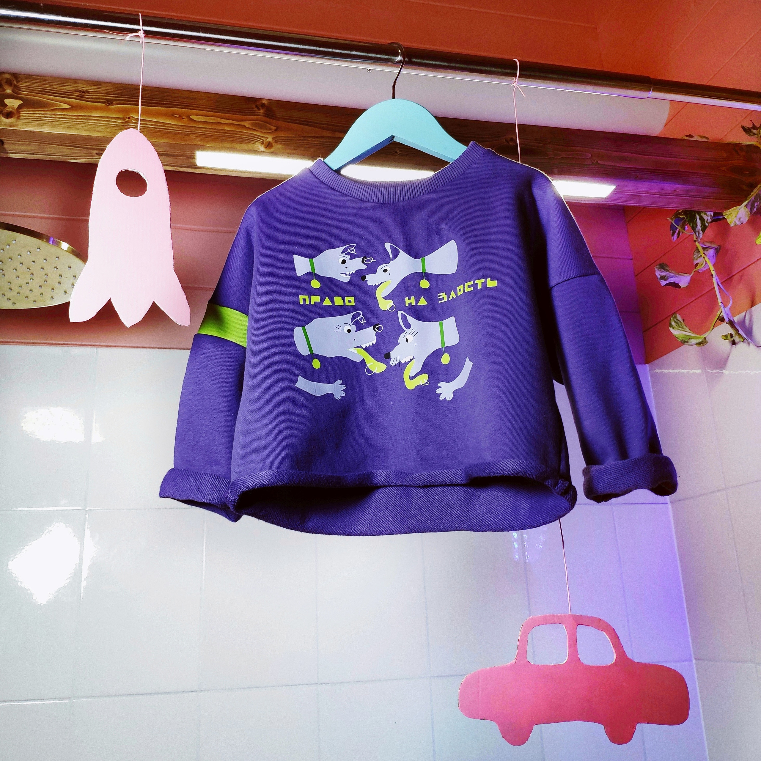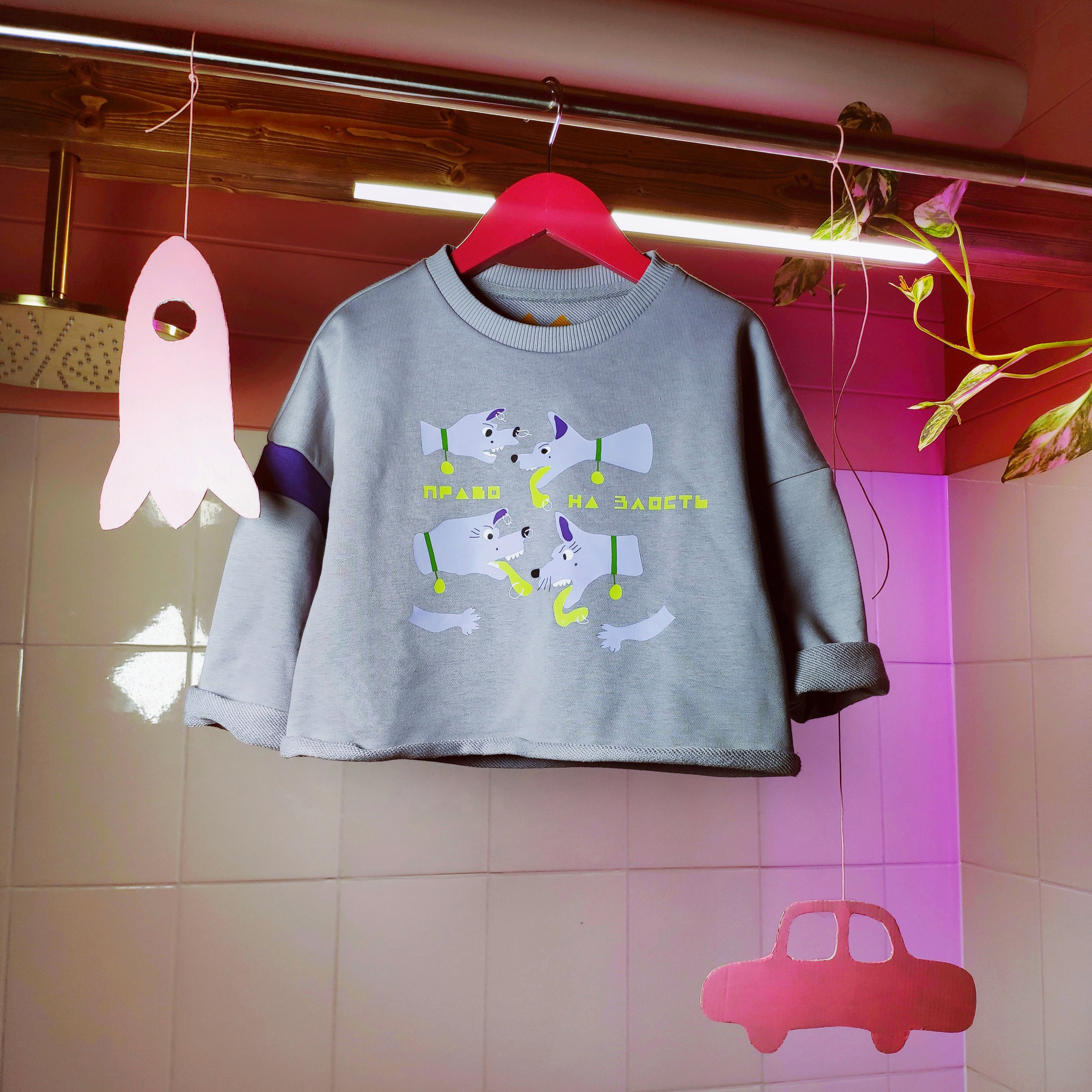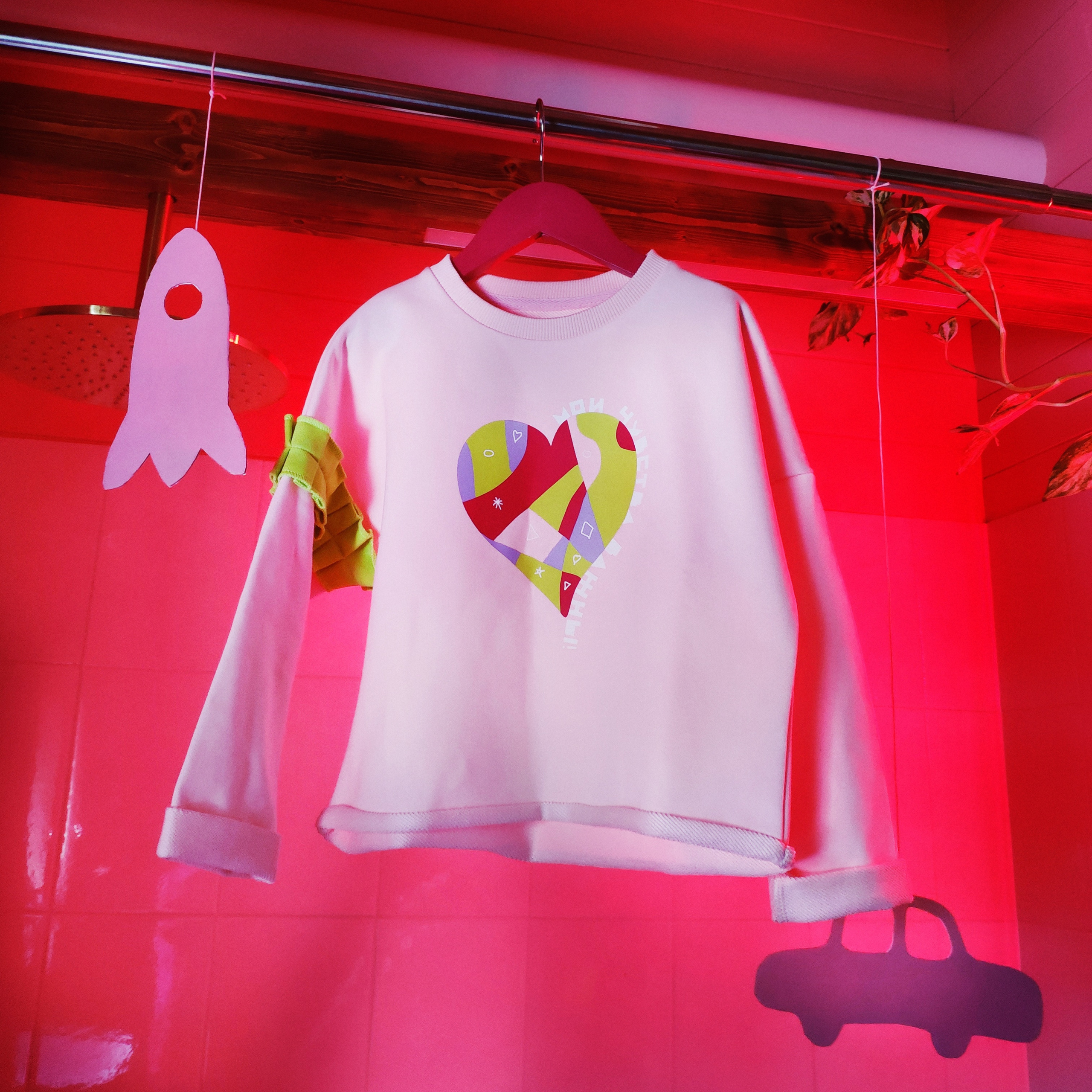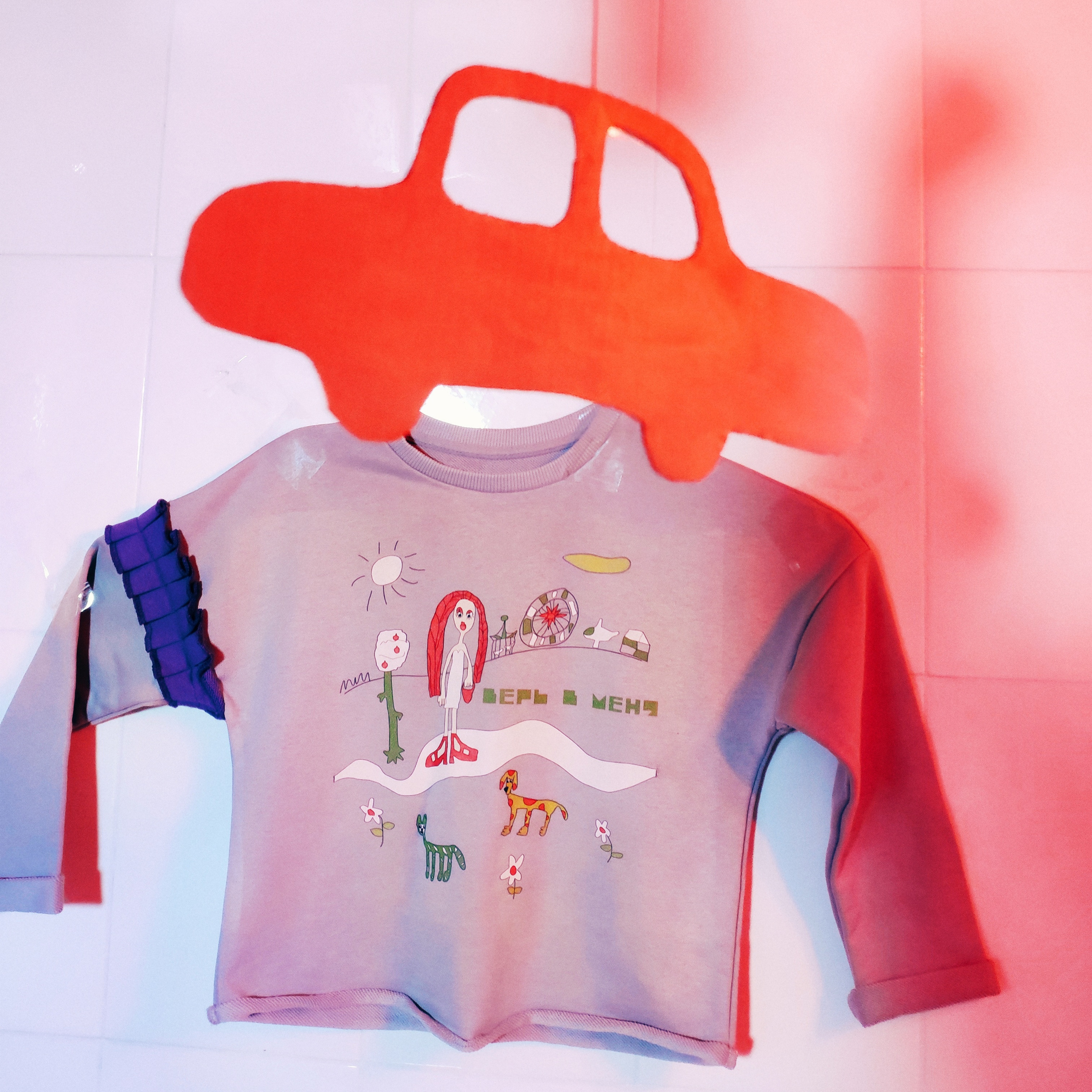 Стильные, теплые оверсайз свитшоты с ассиметричным декором на рукаве: контрастная рюша или полоска. Принты, основанные на реальных детских рисунках и конечно авторский фирменный шрифт бренда! Сидят свитшоты шикарно и имеют запас на рост ребенка, так рукава можно подворачивать под нужную длину.